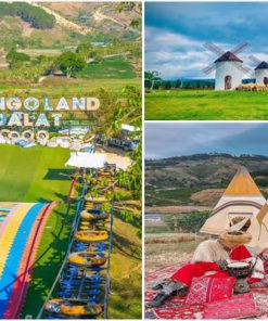 - Khu Du Lịch Mongoland – Hòa mình trong không gian mát mẻ tại Thảo nguyên xanh. Tan chảy trước sự đáng yêu vui đùa cùng các chú thỏ, cừu, hươu sao, dê,… Trải nghiệm trượt phao khô dài và nổi tiếng nhất Đà Lạt hiện nay