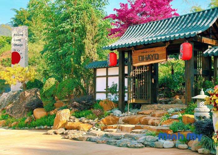 - Hoàng Long Ohayo (Nhật Bản thu nhỏ) với Khu vườn Nhật Bản độc đáo này còn được ví như một ốc đảo bình yên với những mái ngói cong cong, những chiếc đèn lồng đỏ rực rỡ, những hàng hoa anh đào thơ mộng và những hồ cá Koi đầy màu sắc.