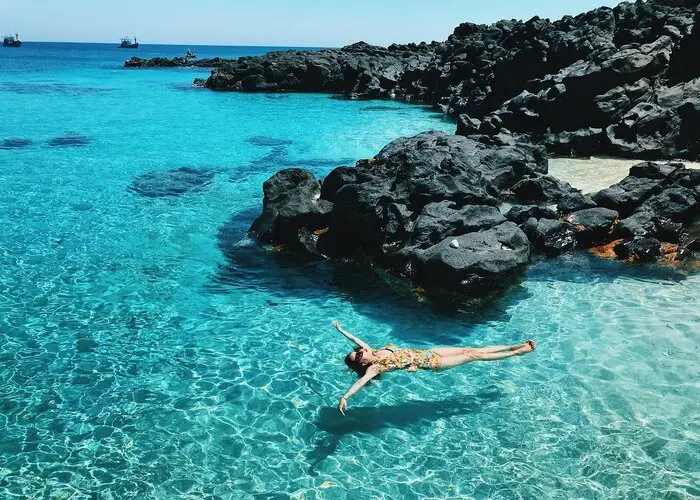 - Tự do lặn ngắm san hô ( chi phí tự túc ) được người dân địa phương trang bị những chiếc thuyền thúng, áo phao bộ lặn để thỏa sức ngắm vô vàn loài thủy, hải sản dưới lòng đại dương